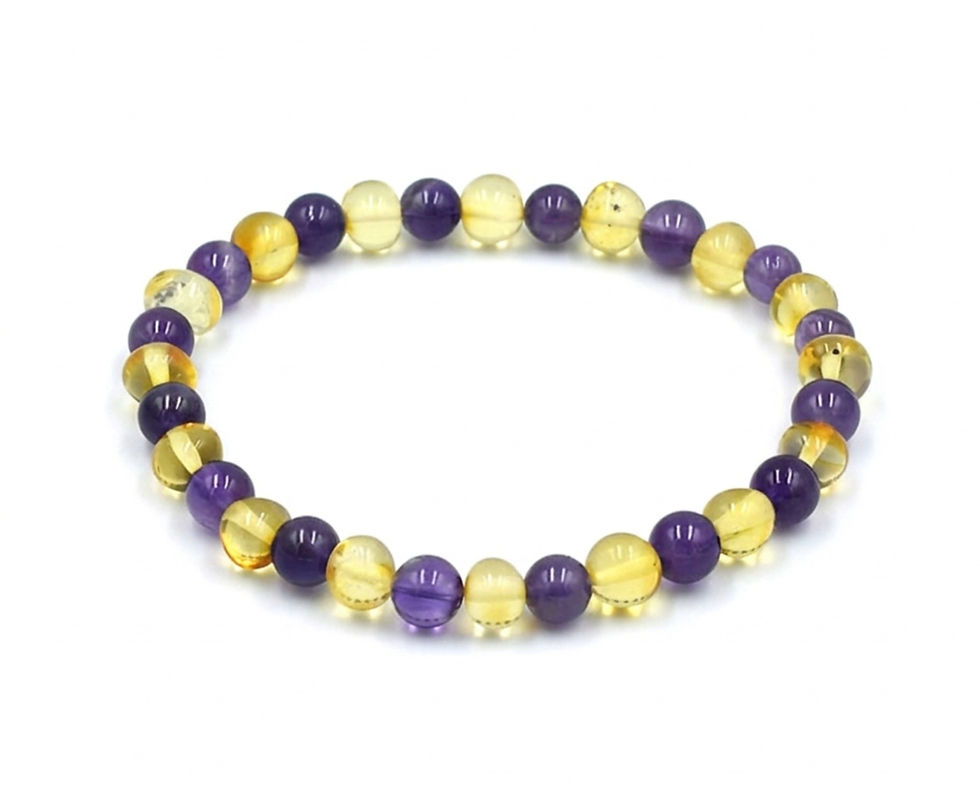Pulsera elasticada ´Protección´ de Ámbar Báltico y Amatista